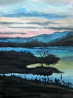 木崎湖を描いてみたけど